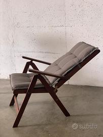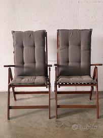 2 sedie con schienale reclinabile in legno massiccio ciliegio, in regalo i 2 cuscini