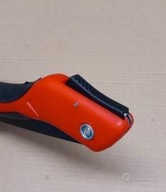 Il pratico blocco lama di sicurezza fa si che la sega non si apra accidentalmente durante il trasporto e che non si chiuda involontariamente durante l'uso. Il manico ha inserti in silicone anti slip e una forma studiata per ottenere una presa più salda anche con mani sudate o sporche di olio catena.