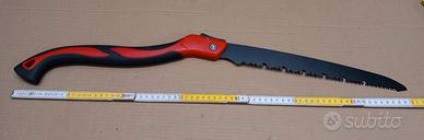 Vendo 2 bellissime seghe pieghevole adatte sia per uso obbistico che professionale, in acciaio temprato trattato anti deterioramento chimico/fisico con vari strati di protezione polimateriale. Le lunghezze utili delle lame sono da 250 mm eo 350 mm in acciaio temprato con denti super affilati e efficenti nel taglio di legno verde o secco, munita di canali di scarico per aumentare la resa di taglio e ridurre l'attrito.