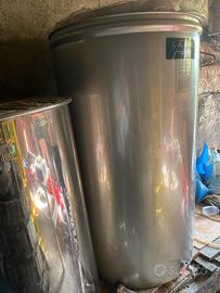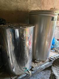 Vendo in coppia due serbatoi in acciaio inox AISI 304 (18/10) per alimenti, ideali per vino, olio o mosto.