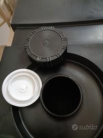 Si prega di notare che, per motivi di procedura, le dimensioni del serbatoio sono di circa 2% in ogni dimensione. Nella parte inferiore si trova un connettore da 3/4 pollici con manicotto in ottone (sigillato allo stato iniziale – può essere aperto in caso di necessità con punte da Ø 20 mm). Questo facilita enormemente il collegamento di diverse installazioni e consente lo svuotamento senza lasciare residui. Può essere utilizzato anche come condotto per tubi o calibri. Il serbatoio può essere riciclato al 100%, perché LDPE è un materiale termoplastico popolare! Inoltre, un serbatoio intatto può essere facilmente ricondizionato e alimentato al circuito senza risorse aggiuntive.