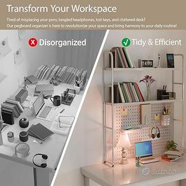 Display and Storage Platform: Magnetic Panel keep your things neatly arranged. We also provide a set of accessories to help you hang headphone,collectibles,notes and other small items. So you can easily DIY your panel to suit your needs and style. Panel's reversible design fits left or right setups so you can choose the direction of the whiteboard without holes.