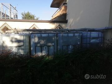 Vasche per recupero acqua piovana complete di collegamenti con rubinetto unico per tutte e supporto sottostante di sostegno in blocchi e traversi di cemento per stare sotto la pioggia. Ritiro nel posto. Con mezza vasca esterna per recupero manuale o con pompa. Entro febbraio Ritiro nel posto.