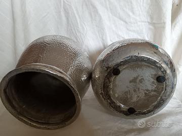 Rara coppia di vasi o cache pot in ceramica cromata argento, produzione medio orientale degli anni 60- 70, conservati con grande cura.