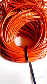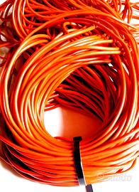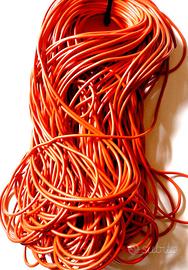 Cordone tondo in gomma piena (profilo compatto, non cavo), colore arancione, materiale flessibile e resistente. Prodotto versatile, adatto a diversi campi di applicazione, dall’artigianato alla pelletteria, fino a usi nautici e industriali.