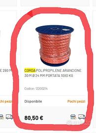 Grande rotolo di corda in polipropilene, di circa 200 metri (l'altro rotolo l'ho spacchettato e risultano circa 200 metri), ma lo considero per sicurezza almeno 160 metri. Diametro 2,4 cm.