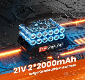 Doppia Batteria, Doppia Protezione: Due batterie agli ioni di litio di alta qualità da 2,0Ah e 2000 mAh con caricatore rapido consentono al trapano elettrico di durare 60-80 minuti ininterrottamente e di ricaricarsi completamente in soli 60 minuti. (L'indicatore luminoso fornito con la batteria visualizza sempre il livello della batteria, in modo da poter monitorare con precisione l'avanzamento del lavoro).