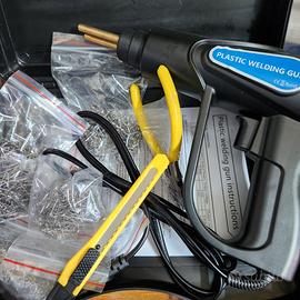 Cosa otterrai: 1 x saldatrice in plastica, 100 x 0.8mm graffette ad onda lineare, 100 x 0.6mm graffette ad onda lineare, 200 x 0.8mm graffette per saldatura a onda grande, 100 x 0.6mm graffette per saldatura a onda grande, 150 x 0.8mm graffette per saldatura a forma di V, 150 x 0.6mm graffette per saldatura tipo M, 40 x barre per saldatura in plastica (20 nero, 20 bianco),2 x testa di lisciatura termica,3 x rete metallica,5 x foglio di alluminio,1 x pinze,1 x Valigia di trasporto,1 x Istruzioni.