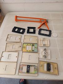 23 pezzi vintage placche luce, supporti, interruttori ,pistola per silicone come da foto