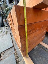 25 listelli corti in legno colore noce spessore cm. 12 x cm. 10 della lunghezza variabile da cm. 45 a cm. 55 come nuovi provenienti da ritagli di un tetto vendibili anche singolarmente 2 euro cadauno, ideali anche come paletti per bordure delimitazione giardini.