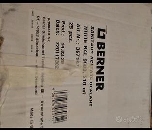 scatola da 25 pezzi di cartucce di silicone acetico sanitario bianco da 310 ml . scadenza 14.03.2027. Possibilità di acquisto singolo vedere altro annuncio.
