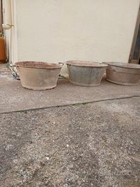 Vendo 3 bacinelle in ferro zincato degli anni 60.Hanno qualche ammaccatura in particolare una presenta della ruggine.Prezzo 25euro per tutte e tre. Non spedisco