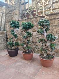 VENDO 3 BONSAI (ficus ginseng) altezza 80/90 cm