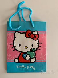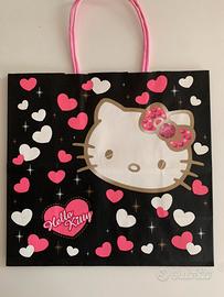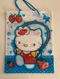 Bellissime borse regalo Hello Kitty, perfette per un regalo speciale! Sono tre borse in totale, due blu e una rosa. - Due borse presentano un design con Hello Kitty e fragole. - Una borsa ha un design con Hello Kitty e cuori su sfondo nero. - Le borse sono in buone condizioni. 1 in plastica mis. cm 30x23 , 1 in carta mis. cm 23x22 e 1 in carta lucida mis. cm 11x14