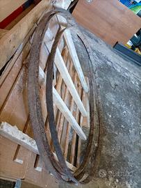 vendo 3 cerchi in ferro per antiche botti in legno tutte e 3 di diametro 108cm x 4 cm x 0,5 cm di spessore disponibile per informazioni prezzo trattabile