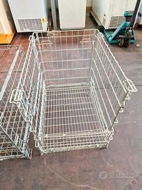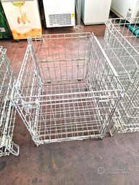 3 ceste in filo usate, si tratta di 3 contenitore in rete, sarebbero impilabili ma i modelli sono diversi tra di loro.