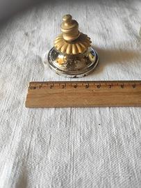 vendo il vetro decorato di una vecchia lampada da comodino , presenti anche le viti in ottone relative alla lampada rotta.