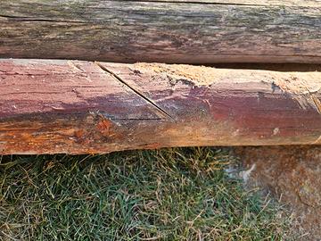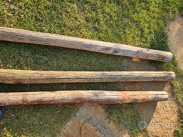 vendo 3 pali in legno di ciliegio - grezzi, non trattati - diametro medio 10cm - 2 con lunghileza 3mt - 1 con lunghezza 2mt (effettivi 2,60mt ma da un lato è mezzo tagliato come da foto)