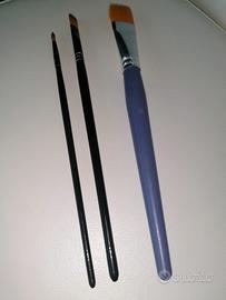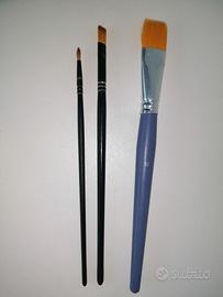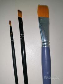 set di 3 pennelli sintetici per pittura, ideali per acrilico, olio o decoupage. Il set è composto da: 1 Pennello piatto grande (misura 18): perfetto per stesure ampie e fondi. 1 Pennello piatto più piccolo: ideale per sfumature e tagli di precisione. 1 Pennello a punta tonda fine: ottimo per dettagli e linee sottili. I pennelli sono nuovi mai usati, con setole integre e impugnature ergonomiche Prezzo complessivo per tutti Vendo causa regalo non utilizzato No spedizione Scrivimi pure per info o per accordi sul ritiro. Grazie 🔹 Zona riro Aranova In alternativa previo accordo: 🔹 Roma via Veneto (dal lunedì al venerdì ora pausa pranzo 14:00circa) 🔹 parco de medici (il sabato intorno alle 17e30) 🔹 Zona Casalotti 🔹 Zona Cesano
