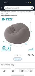 Poltrone gonfiabili grigie della intex, usate solo una volta, in ottime condizioni! Presentano solo qualche macchiolina (come in foto) sul simil-vellutino che probabilmente si può lavare senza problemi. Molto comode e versatili, ottime anche per essere trasportate e riposte quando non vengono utilizzate.
