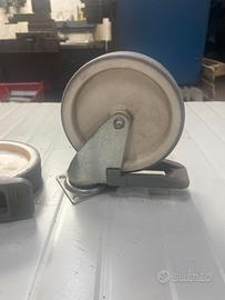con un supporto in metallo e una ruota in nylon o materiale sintetico, comunemente utilizzata per facilitare lo spostamento di mobili, carrelli o attrezzature.