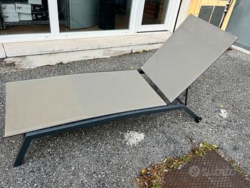 Set di 3 sdraio prendisole da giardino e piscina. Pieghevoli e con ruote In metallo antracite con tela grigio.
