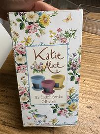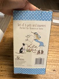 3 vasetti con sottovaso in ceramica