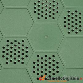 30 Piastrelle pavimento plastica verde drenante. Prezzo 114 euro IVA E TRASPORTO INCLUSI. Possibilità di pagare alla consegna con un sovrapprezzo di 6 euro IVA inclusa. 30 Piastrelle pavimento resina verde drenante. Piastrella autobloccante in polipropilene, 400x400xh25 mm di ingombro, 390x390xh25 mm superficie netta. Idonea per uso esterno: vialetti, pavimentazione sotto gazebo e salottini dehors, zone pic nic, dehors bar, campeggio, piscine e serre, giardino. Semplice e rapido montaggio e smontaggio senza utensili. Prodotto italiano ecosostenibile. CARATTERISTICHE -Larghezza 400 mm -Lunghezza 400 mm -Spessore 25 mm -cellette a nido d’ape sul fondo per dare maggiore portata -design realizzato in modo da creare una piastrella che possa soddisfare entrambe le richieste di drenante e piena -disegno che permette la combinazione di aggancio a un quarto e due quarti -abbinamento sfalsato ma con continuità di disegno dell’intera superficie. -Piastrelle munite di incastri laterali per la giunzione. -Portata statica 9000 kg/mq distribuiti uniformemente Contattaci per maggiori quantità e per avere ulteriori informazioni. Oppure inviaci un messaggio con il tuo numero e ti richiameremo non appena possibile Telefono/Whatsapp: