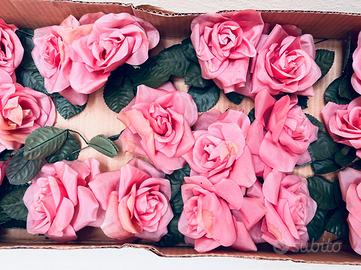 Grande scatola con 30 rose artificiali rosa, molto realistiche, in ottime condizioni. Petali in tessuto morbido e foglie verdi dall’aspetto naturale.