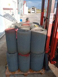 300 metri totali di rete, usata e tagliata a varie misure i rotoli interi sono 25x0,5 metri e ce ne sono 5 maglie 1cm2 zinchata, marca cava torta, per acquistare la stessa quantità nuova servono più di 1500€ quindi prezzo affare