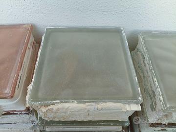 34 blocchi in vetro mattone trasparente rosa e verde acqua 19 x 19 x 8