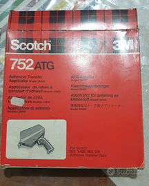 Applicatore di nastro adesivo dispenser 3M Scotch ATG-752 completo di bobina intera di nastro adesivo. Colore azzurro.