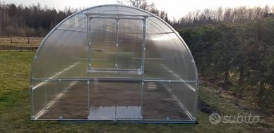 Serra gazebo robusta con struttura ad arco, ad USO PROFESSIONALE, con telaio in acciaio zincato e rivestimento con pannelli in policarbonato da 4 mm.