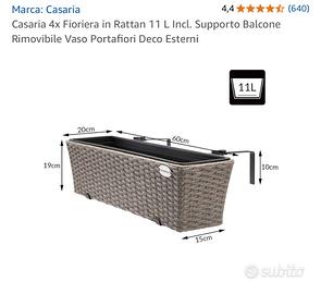 Vendo 4 fioriere, dimensioni in foto, color crema. Utilizzate solamente per 5 mesi. Praticamente nuove.