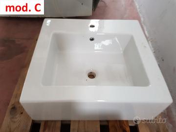 4 lavelli in ceramica usati, disponibilità: - mod. A 58X45cm - mod. B 73X56cm - mod. C d'appoggio 59X55cm h21cm - mod. D 59X44cm costano 15,00€ al pezzo iva esclusa, vendiamo solo con ritiro presso il nostro magazzino
