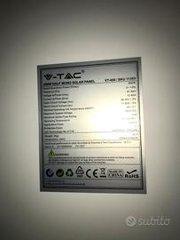 vendo come nuovi e perfettamente funzionanti per cambio progetto 4 pannelli fotovoltaici V TAC 450W l uno ottime prestazioni ed efficienza,a meno della metà del prezzo di acquisto.collegabili con inverter on grid ad isola e off grid e con inverter tipo zucchetti ottimizzatori zavorre staffe zincate Huawei trina sunpower longi ABB fronius Panasonic growatt zero immissione ta . possibilità di trasporto.