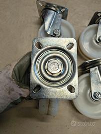 4 ruote girevoli piene in poliammide su cuscinetti Diametro 12,5 cm Altezza ruote 15 cm Dimensioni piastra di fissaggio cm 8,5x11,5 Interasse dei fori cm 6x8 Ruote su cuscinetti molto robuste adatte anche per carichi pesanti carrelli industriali per movimentazione materiali, adatte anche per attrezzature o vari utilizzi. Consegna a mano in zona Grandola ed Uniti (CO) oppure possibilità di spedizione.