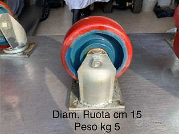 Ruote pesanti percarrelli per carichi pesanti, la portata per ogni ruota dovrebbe essere di 700 kg, girano benissimo e sono a posto, il prezzo si intende di tutte e quattro