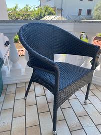 Vendo 4 sedie giardino, usate pochissimo x errato acquisto. Sono facilmente impilabile molto comode possono stare fuori alle intemperie.