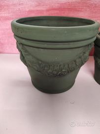 4 vasi terracotta dipinta verde scuro.grande cm14/15 piccolo cm7/9 ben tenuti piccoli segni quasi invisibili