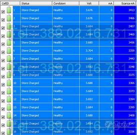 La capacità è testata e garantita su ogni singola cella (come da foto), pari al nuovo, tutte con capacità di circa 3450 mAh, la stessa di fabbrica.