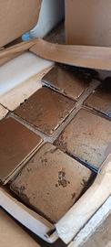 48 piastrelle 10x10 cm fatte a mano, in travertino smaltate bronzo di La Manifattura Veneta. Nuove, eleganti, brillanti. Prezzo un po' trattabile se acquistate tutte, altrimenti 10 euro cad.