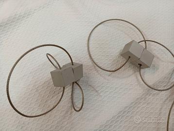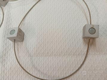 N. 5 Fermatenda flessibili calamitati composti da un filo in acciao flessibile e adattabile in ogni modo con due piccoli terminali in alluminio argentati e calamitati. La presa è fortissima da cui il costo degli oggetti che, di listino, costavano €. 35 cadauno! Io li svendo a €. 8 cadauno per sgombero magazzini.