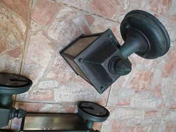 5 Lampade di ferro, con braccio per esterno. altezza cm 30 base cm 10 distanza dal muro cm 5