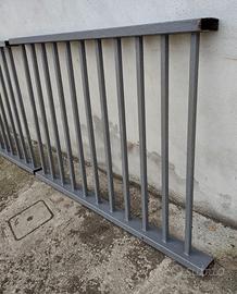 Ringhiera inferriata parapetto in ferro lunghezza 5 metri x altezza 108 cm x profondità corrimano 10 cm x . L'inferriata è tagliata in tre pezzi