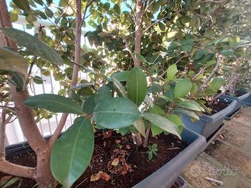 5 vasi con siepe alta più di 2 metri in ogni vaso ci sono 2 siepi sempre verdi sia estate che inverno