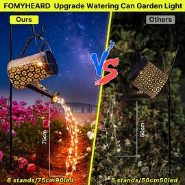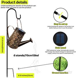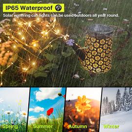 Lampada solare da giardino con sei catene luminose a LED in rame, può essere facilmente piegata e assemblata. La catena luminosa a LED in filo di rame è impermeabile IP65, il che significa che la lampada solare da giardino può essere utilizzata in caso di pioggia o neve.