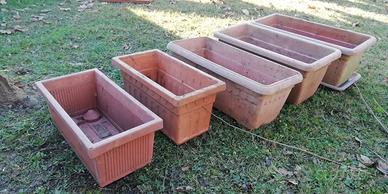 6 vasi a cassetta + 2 sottovasi in PoliPropilene usati, made in Italy, vendo SOLO in blocco a 50 euro.