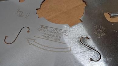 Vendo 6 lame circolari professionali per legno, tutte nuove mai usate. Prodotte dalla storica La Commercial Fideuro (Milano), ideali per falegnameria e lavorazioni su legno massello. Specifiche (per ogni lama): Diametro: 250 mm Spessore: 2,2 / 1,5 mm Foro: 70 mm Dentatura: 20 denti + 2 rasanti Materiale denti: HW (carburo di tungsteno) Velocità max: 8000 RPM Confezioni integre Prezzo: 25 € l’una 120 € tutte e 6 (sconto stock) Preferibile ritiro a mano.