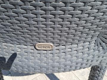 Set di n. 6 sedie marca Keter color antracite in simil rattan molto resistente. Ottime.